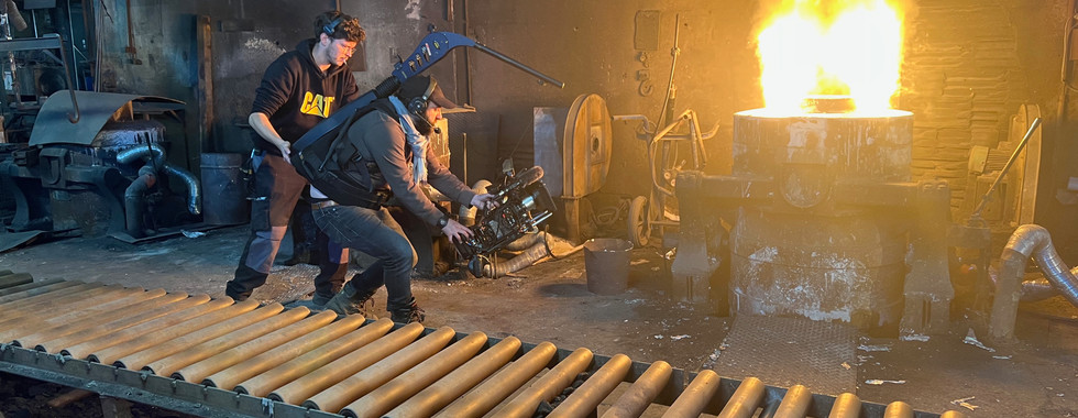 Tourner dans une fonderie, ce n’est pas simplement filmer un site de production, c’est entrer dans un monde de gestes sûrs, de rythmes précis et de concentration permanente, où l’on comprend très vite que la beauté ne vient pas d’un décor fabriqué mais de ce qui se fabrique réellement. Dans Malleus, la chaleur, les étincelles, les textures et les contrastes ne sont pas des effets, ce sont les signes visibles d’un savoir-faire qui s’exprime dans la matière et dans le travail et où les ouvriers ont le sourire !